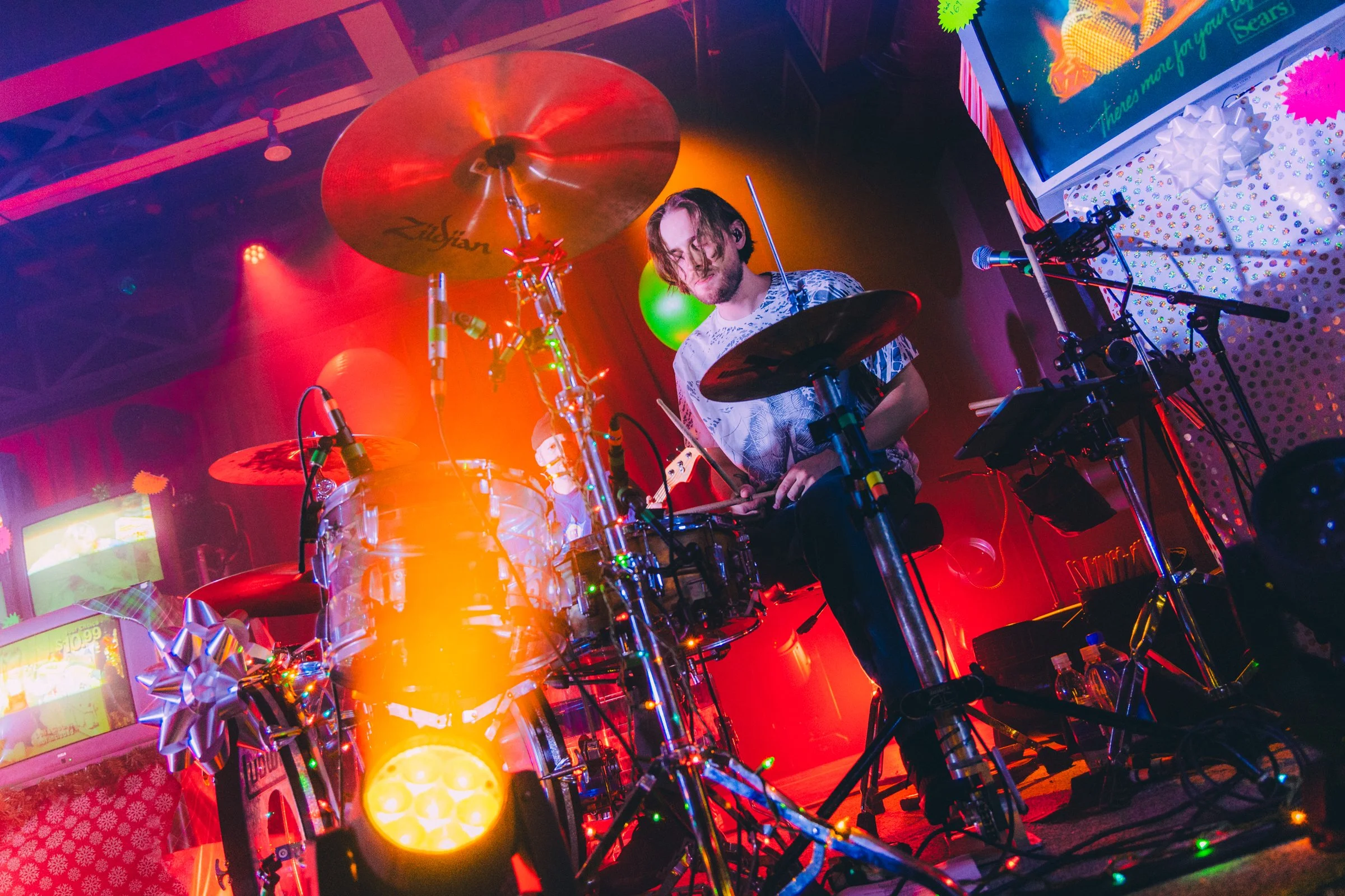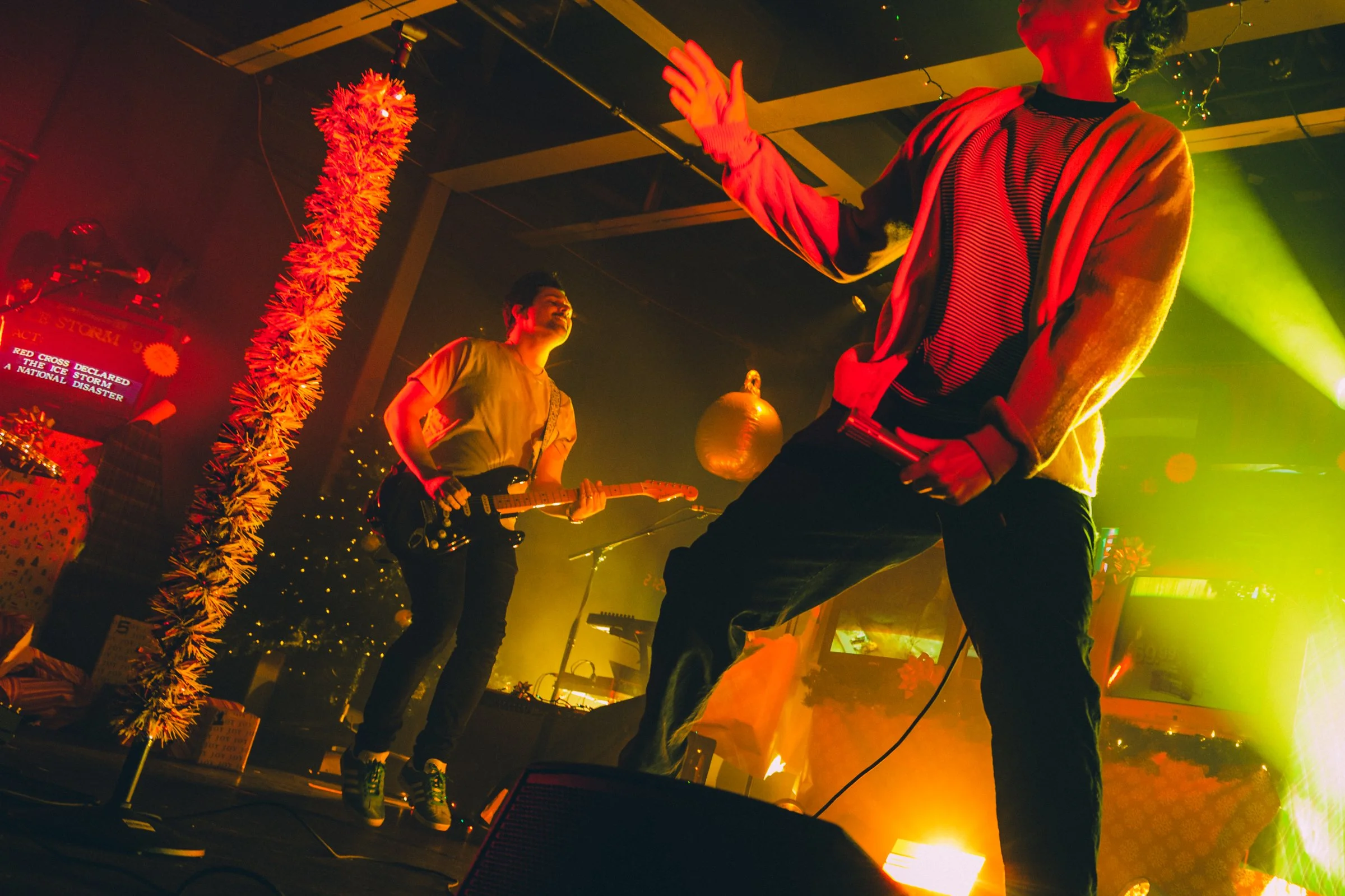 Saturday’s sold-out show had a line down the block as Christmas music set the scene inside the venue. The stage was decorated with large wrapped presents, giant ornaments, and a rotating tree with lights and tinsel hanging from the ceiling. It felt like the perfect setting for a holiday gathering. The crowd was diverse, both young and old, with Joywave shirts everywhere. Not surprising, as the band’s appeal and following have grown immensely, with fans traveling from miles away just to be at this show. It was the kind of merriment and community the holidays are all about.