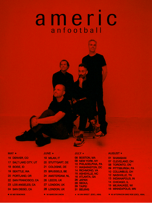 The release also arrives alongside the announcement of the No Feeling World Tour, with tickets on sale now, and sets the stage for the band’s upcoming album American Football (LP4), due out May 1 via Polyvinyl Record Co..