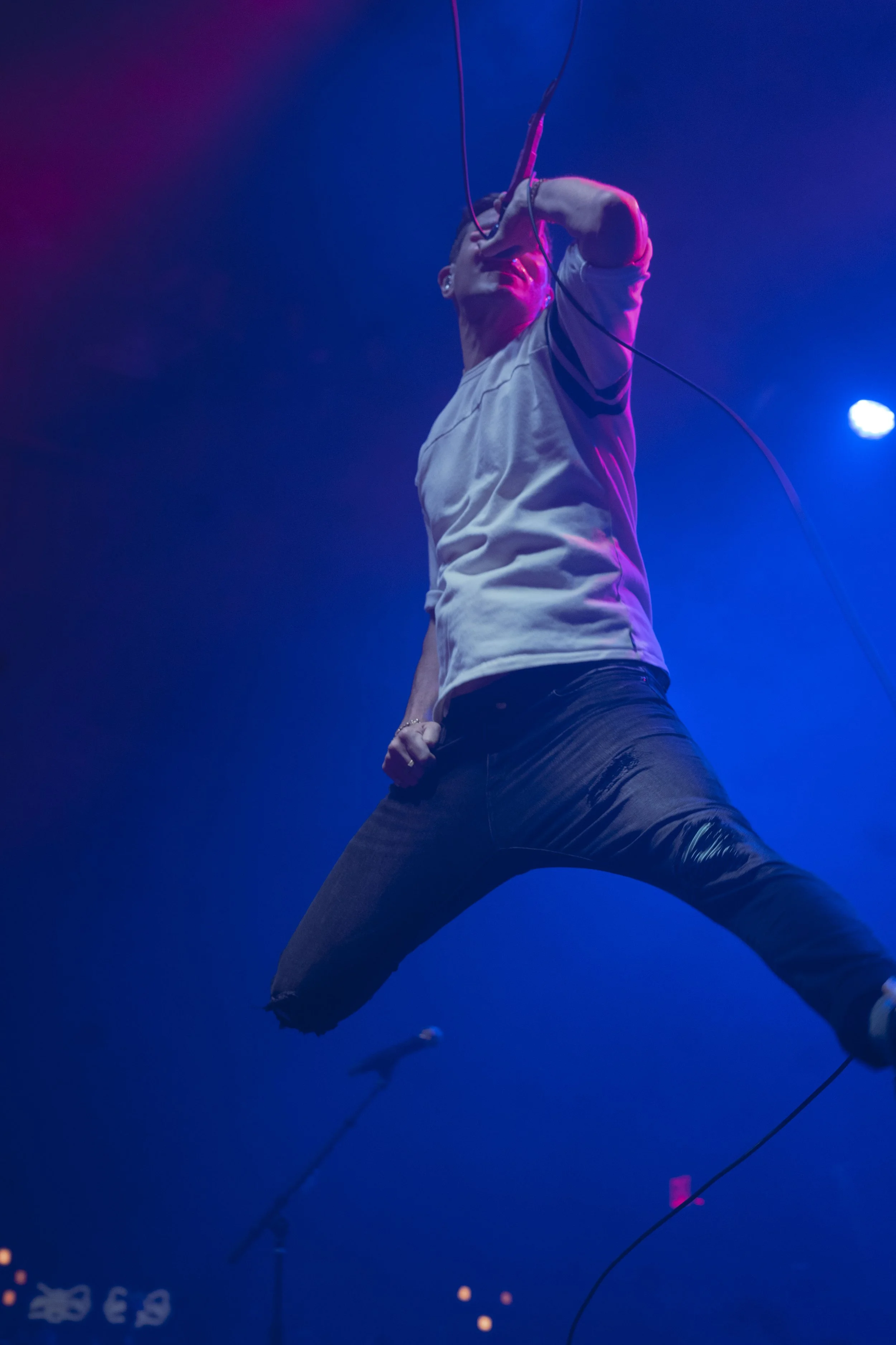 Finally, Cobra Starship took the stage for the first time in over a decade. This is where my heightened expectations began to arise, as Cobra Starship has significantly impacted my life. They are commonly placed alongside these crunkcore scene girl party bands, but they hold a lot of depth that others don’t tend to explore. Their production value, thanks to the masterful ears of Patrick Stump, has an elevated sense of musicianship. So, yes, songs like “Hot Mess” are so fun—but I expect Gabe Saporta to deliver energy and vocals…and I was not disappointed! This reunion was a long time coming, with reservations from Saporta being outweighed by excitement from his peers, including keytar player Vicky T, who wanted this to happen more than anyone, even me. As a result, the performance that unfolded before me was nothing short of real-life magic. I felt so lucky to be in that venue with everyone I know, smooshed together like sweaty sardines. I felt the urge to join the mosh pit for the first time. In my clunky Demonia creepers, I heard the first few notes of “The City Is At War” and nearly dove in.