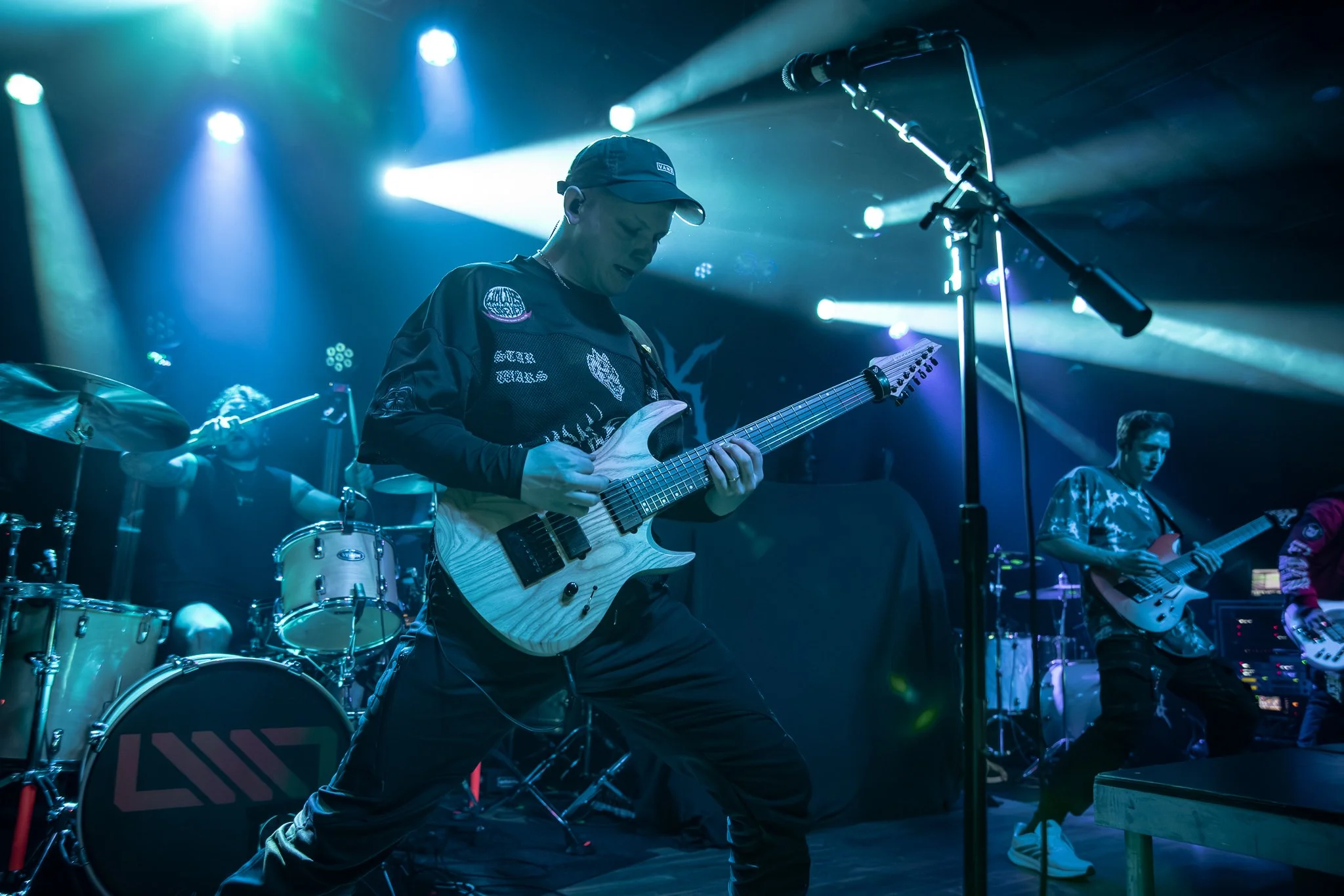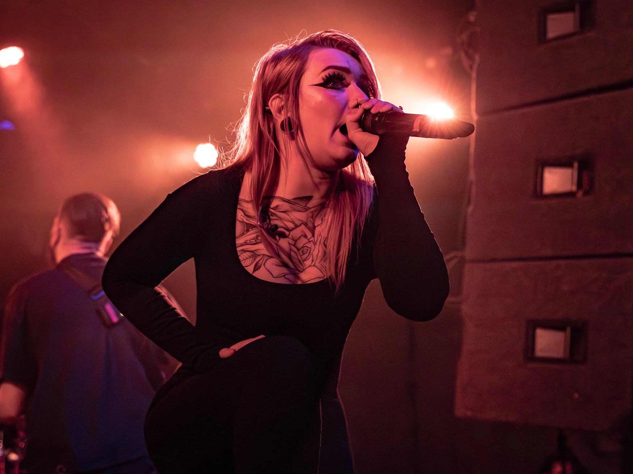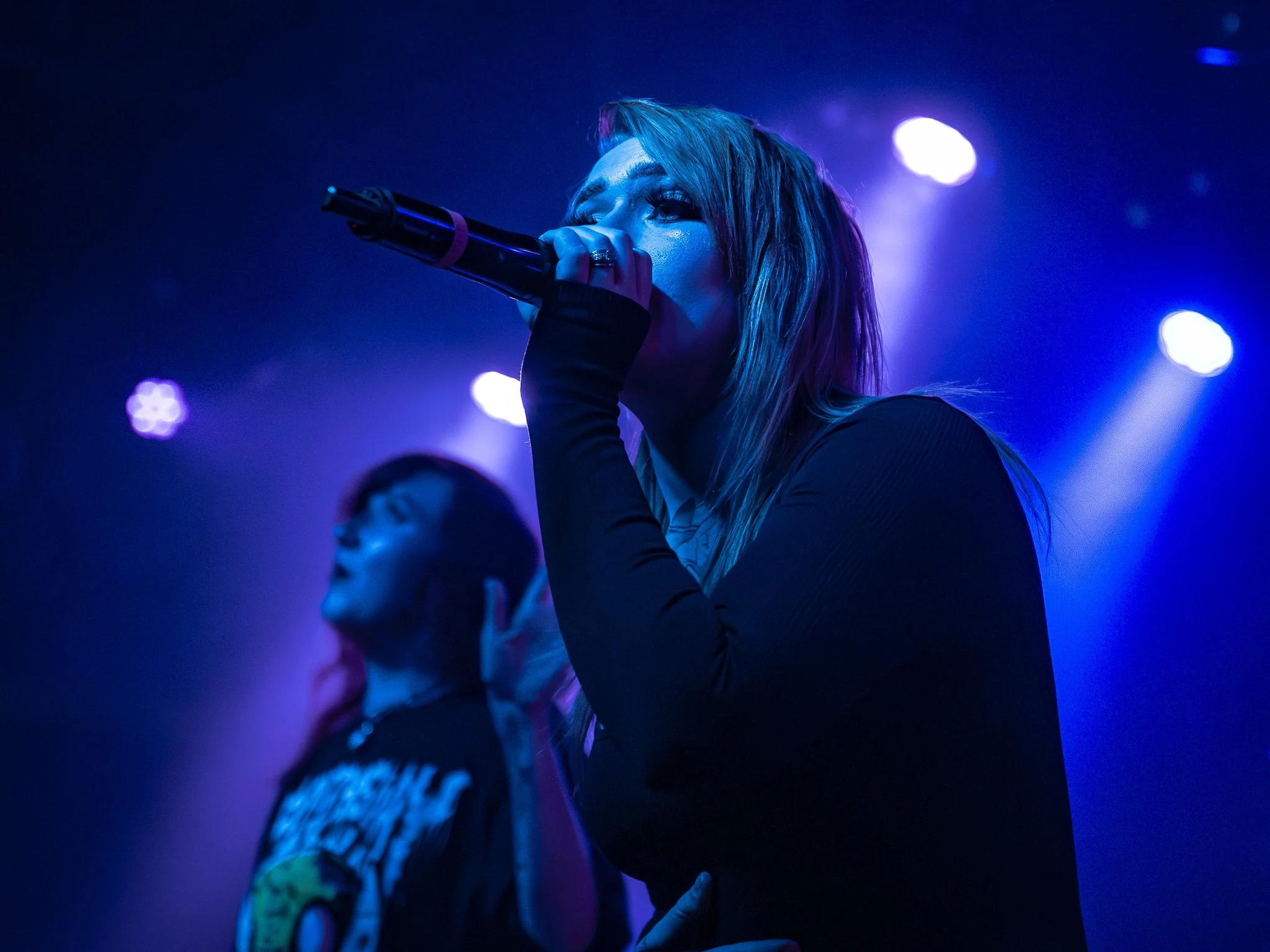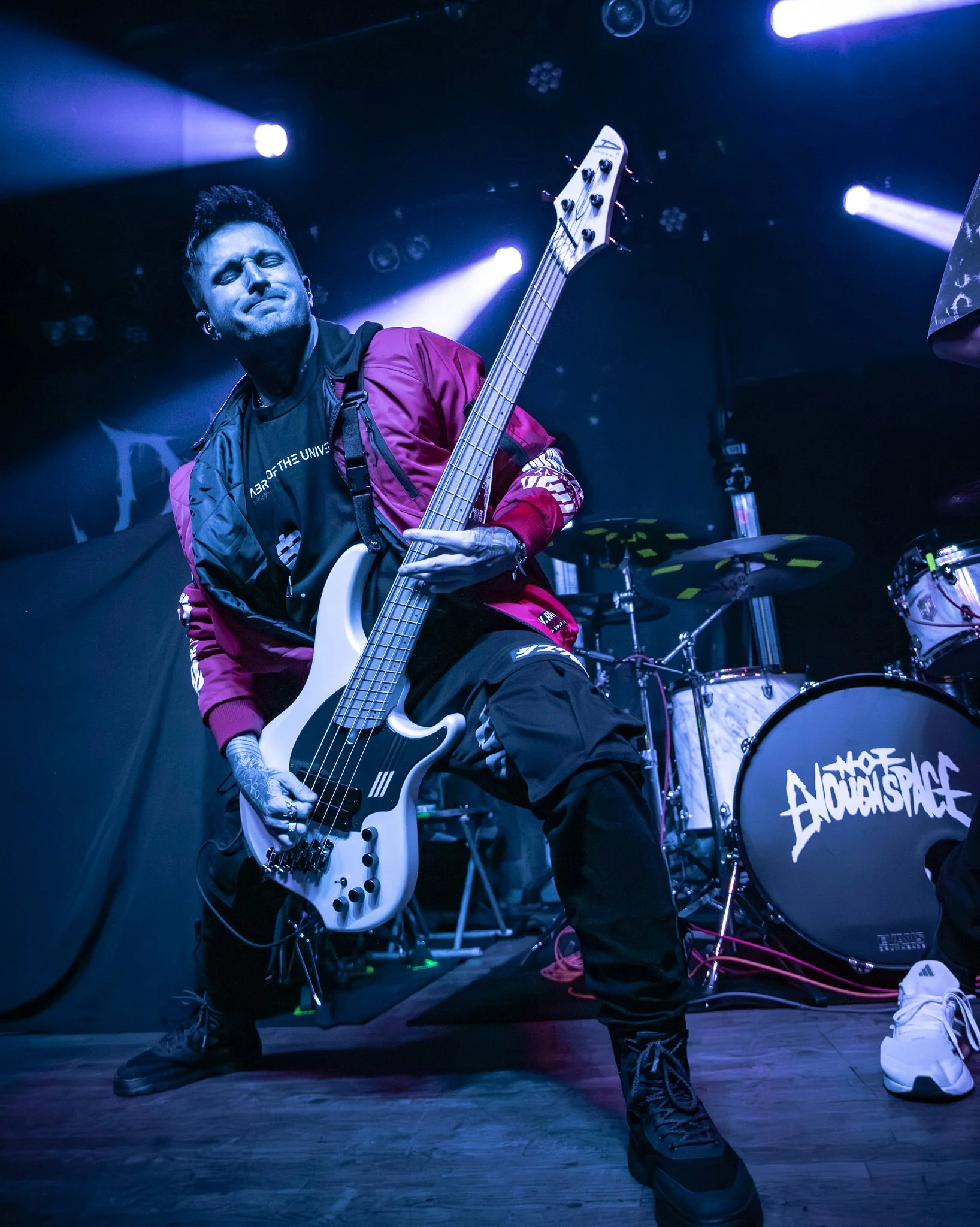 There’s so much to say about this band, and I only have so many words to use (lol). I’ve been following the band since its early beginnings, and the strides they have made are epic. This wasn’t baby strides; these were “We’re kicking the door in, and here we are strides”. They opened their setup with “Weaponize Your Rage,” and it was game on for those in the mosh pit. Singers Liv and Lizzie are pure evil on stage; they suck you in with clean vocals that are hypnotizing like a welcoming hug, and then we get to the chaotic evil, dirty lows, and screams that “bitch slap” you. You never know when and who it’s coming from, and that’s what makes the band a force to be reckoned with. As a whole, Not Enough Space can throw down with the best out there. There’s so much energy with NES on stage that you can’t just throw down with them. Pits went hard throughout their set; the band brought the energy, and the crowd ate it up. Notable songs in the set were “Devil Left Me on Read”, “Don’t Let Go”, “Kill, Eat, Repeat”, and “No Way Out”.