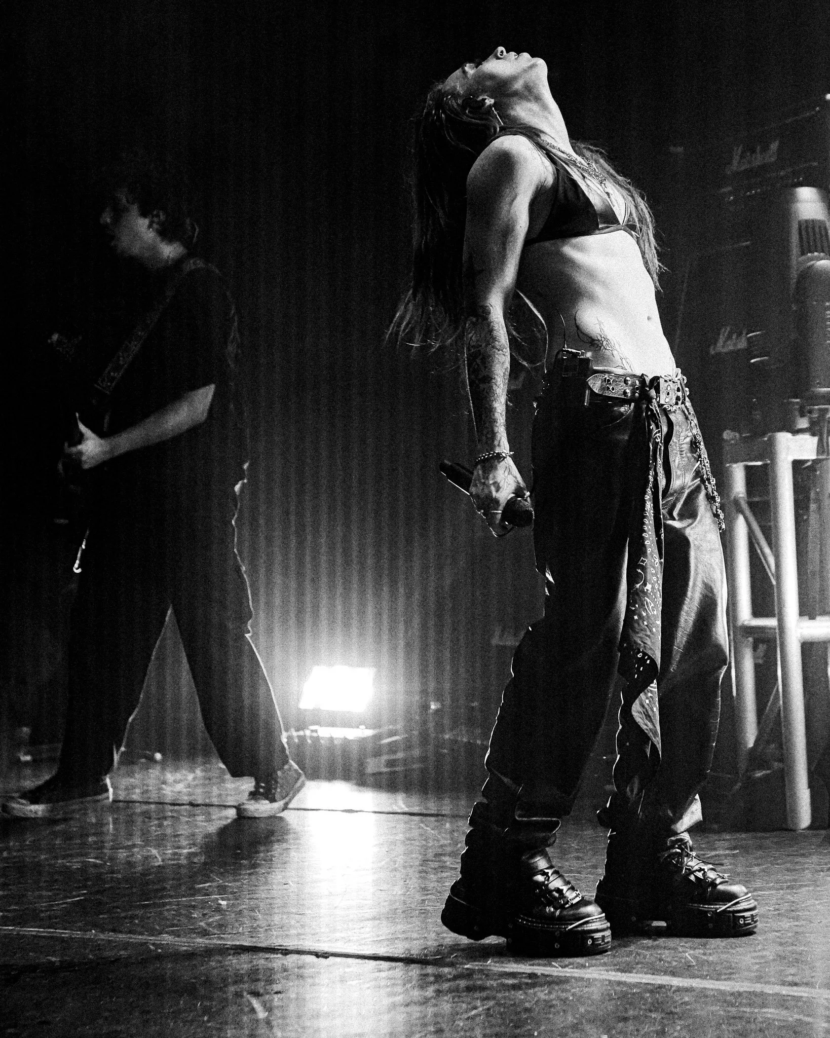 In a compact room full of leather, spikes, and combat boots, Kami Kahoe sold out the Roxy Theatre in West Hollywood last Thursday night, alongside opening talent BRAYTON, who wasted no time encouraging moshing and unapologetic rage.