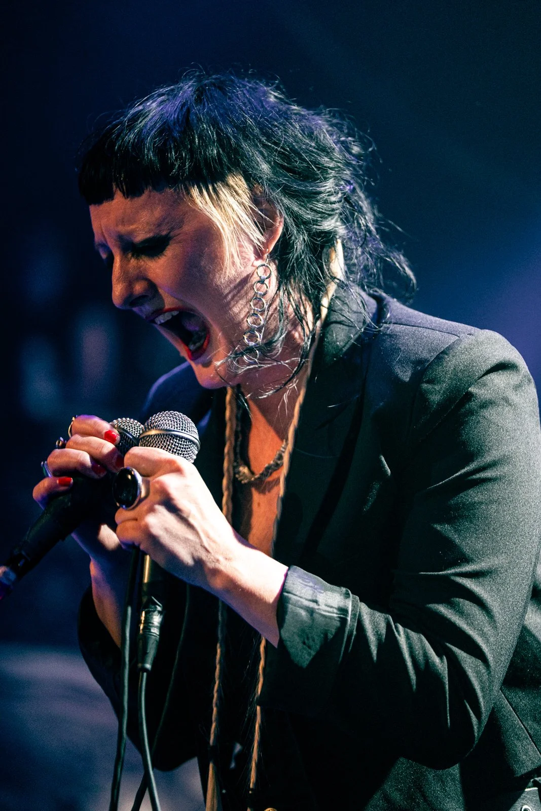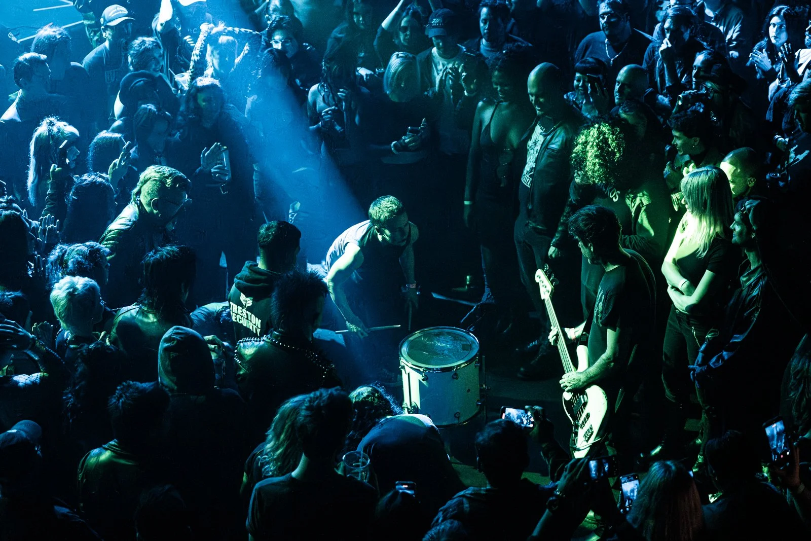 They opened with a slow burn, but once the lights hit, it was total sensory overload. Strobes cut through smoke, guitars howled, and the room shook. The drummer, fierce and locked in, stormed into the crowd with her tom drum while the bassist followed close behind. The singer shredded his guitar into pieces. It was the kind of set that leaves your heart pounding long after the last note.