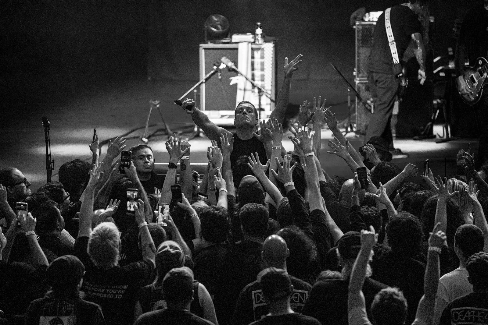 Deafheaven’s new album hit the crowd with beautiful melodies and swift percussion, similar to their very popular album Sunbather. When “Winona” came on, their fans roared and jumped around sporadically! The lighting during their performance was beautiful: purple, aquamarine, pink, red —all the colors you can imagine were lighting up the room! The crowd looked like flowers in the beautiful lights, all whilst the band screamed bittersweet lyrics.